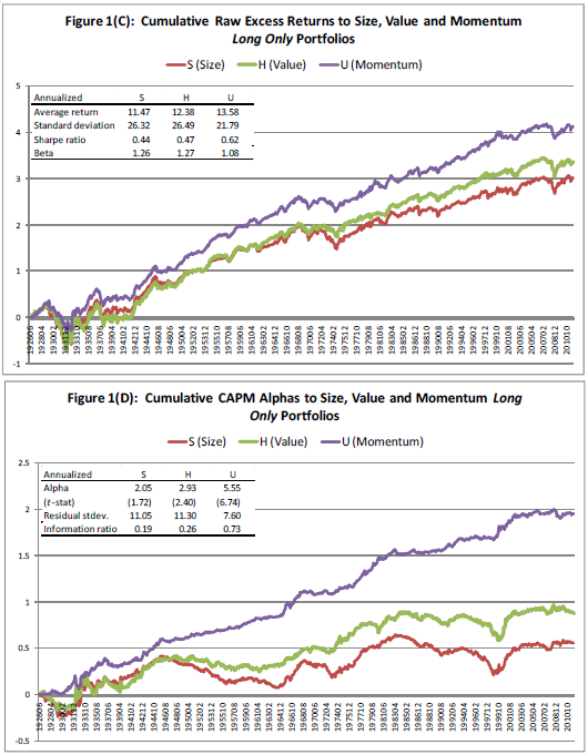 The authors found that investors benefited not only from the exposure to each of the factors individually, but also from the low or negative correlations across these factors. The result was more efficient portfolios than ones that were concentrated in a market portfolio or in single factors.