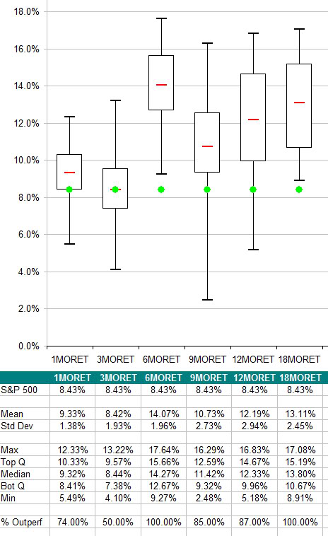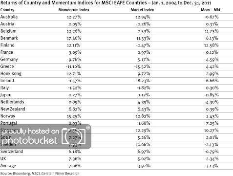I prefer Scenario 4, but maybe that’s just me. Since it is well-known even to Eugene Fama and Ken French that momentum has outperformed over time, what is their study really saying? It’s saying that essentially no one in the mutual fund industry is employing this approach. That’s more a problem with the mutual fund industry than it is with anything else. (Mutual fund firms are businesses and they have their reasons for running the business the way they do.) One option, I guess, is to throw up your hands and buy an index fund, but maybe it would make more sense to seek out the rare firms that are employing a disciplined relative strength approach and shoot for Scenario 4.