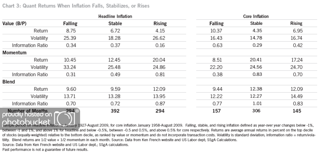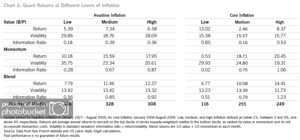 Mark Hooker, Ph.D, of Advanced Research Center recently released a study in which he looked at the returns from value and momentum during low/medium/high inflationary episodes in the US back to the 1920s.