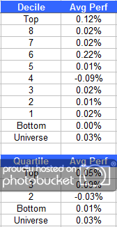 It was a flat week for stocks in all relative strength deciles. We have no out- or under-performance to speak of.