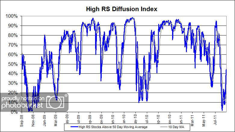 Note: this chart may well understate the high RS returns, since Dr. French’s database does not incorporate total returns. Looking at price returns only, the comparison would be 13.9% annually for high RS and 2.3% annually for the market.
