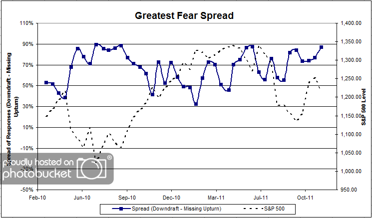 Chart 2. Greatest Fear Spread. Another way to look at this data is to examine the spread between the two groups. The spread jumped this round, from 77% to 87%.