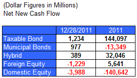 The Leuthold Group included the following chart in their January Green Book. It is the 20 year trailing total return differential of stocks and bonds. Note the five year returns following times when the differential has been negative (when bonds have outperformed stocks for the trailing 20 years).
