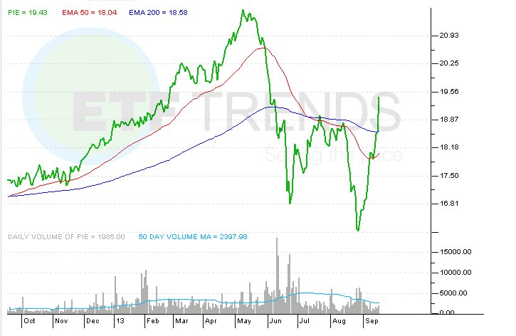 However, PIE was left vulnerable to the tapering-induced emerging markets swoon that started in earnest in May. Although PIE was not highly exposed to BRIC, the fund did have large allocations to some developing markets that waned in the face of tapering talk and higher U.S. interest rates. Think Turkey, Indonesia and Thailand as a few examples.