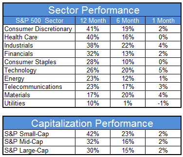 According to Morningstar, this fund is outperforming 95% of its peers YTD. One of the dominant themes in the market in 2013 has been small and mid-cap stocks outperforming large caps. Approximately half of the holdings of the fund are in either small or mid-caps as a result of their strong relative strength. We also had strong performance from our sector positions in November (Healthcare, Industrials, and Consumer Services), all of which outpaced the broad market for the month.