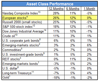 In light of European equities being among the best performing asset classes over the past year, consider what The Economist has to say about the economic improvement in that area: