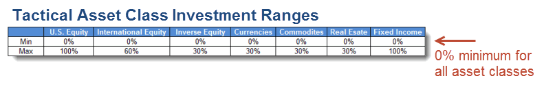 Strategic asset allocation seemed like such a prudent way to invest for this client. That is, until he noticed that his allocations to the different asset classes didn’t change much. Yes, he had exposure to U.S. Large, Mid, and Small equities, Developed and Emerging Market Equities, Fixed Income, and a sliver of Commodities. Yet, the exposure remained approximately the same in 1999, 2000, 2001, 2002…. And, yes, it remained approximately the same during the financial crisis of 2008-2009. This client has become increasingly aware of the fact that asset classes go through bull and bear markets and has asked you about what options there may be to be more flexible.