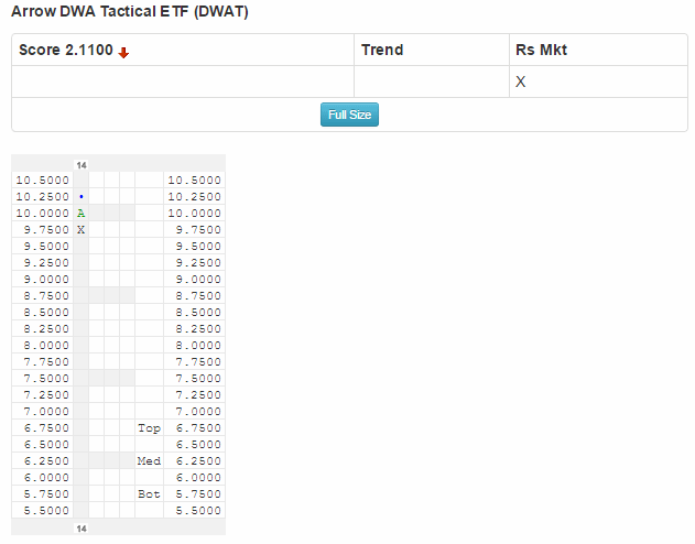 You took the client on, even though he only had $100,000. Normally, your target client has $1 million or more in investable assets, but this client was a friend of one of your best clients. No way to turn this one down. However, this smaller client is well aware of the level of service that you provide your clients. He is aware of your commitment to being a craftsman in the Dorsey Wright methodology and he expects the same level of service that he has heard so much about. It is also in your DNA to do the very best job that you can for every one of your clients. While this small account might not be big enough to justify the time that you provide your bigger clients, DWAT will allow you to employ a methodology that you are comfortable with and that resembles the methodology that you use with all of your clients. Furthermore, when you speak to this smaller client it will be natural for you to explain the current exposure in the ETF and what types of asset class leadership you are currently seeing in the market.