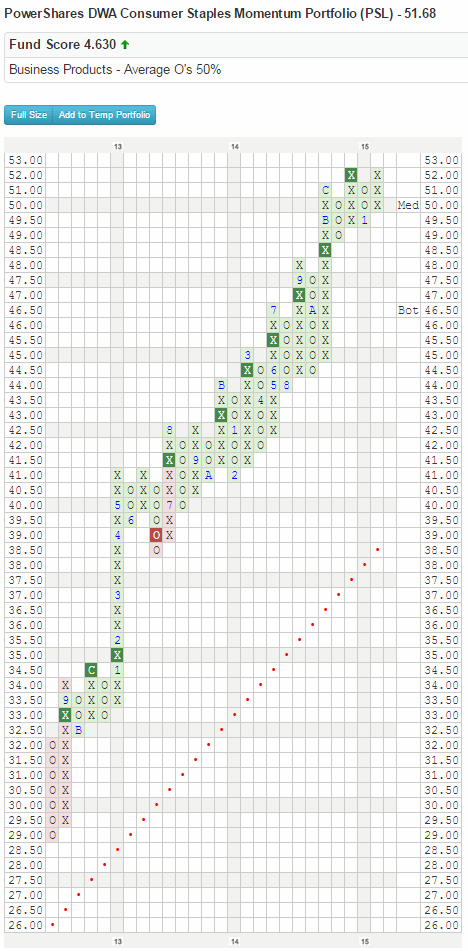 PSL: Prior to fund inception date (10/12/06), chart is created using extrapolated index data (EZSK), and the fund tracked this index through 2/18/14. Effective 2/19/14, the fund changed the index that it tracks to DWA Consumer Staples Technical Leaders Index (TLCONSTA)
