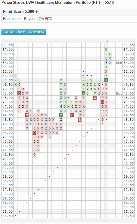 PTH: Prior to fund inception date (10/12/06), chart is created using extrapolated index data (EZXK), and the fund tracked this index through 2/18/14. Effective 2/19/14, the fund changed the index that it tracks to DWA Healthcare Technical Leaders Index (TLHEALTH)