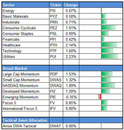 Our model compares the relative strength of all of the ETFs in the investment universe. Those fixed income sectors exhibiting the strongest trends will be represented in the portfolio.