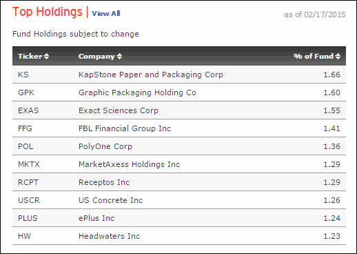 Top holdings for DWAS are shown below: