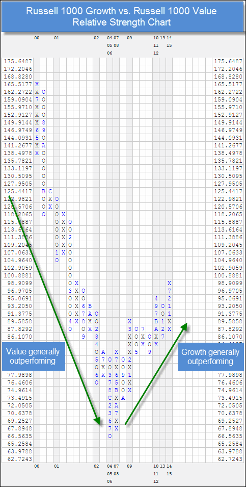 Source: Dorsey Wright, Price returns only, not inclusive of dividends or all transaction costs, IWF used for Russell 1000 Growth and IWD used for Russell 1000 Value