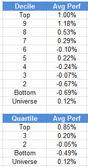 As shown below, this simple momentum strategy outperformed the Russell 1000 Total Return Index by a meaningful margin during this test period covering 12/31/1989 – 9/30/2016.
