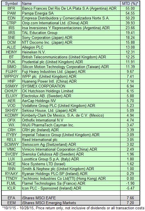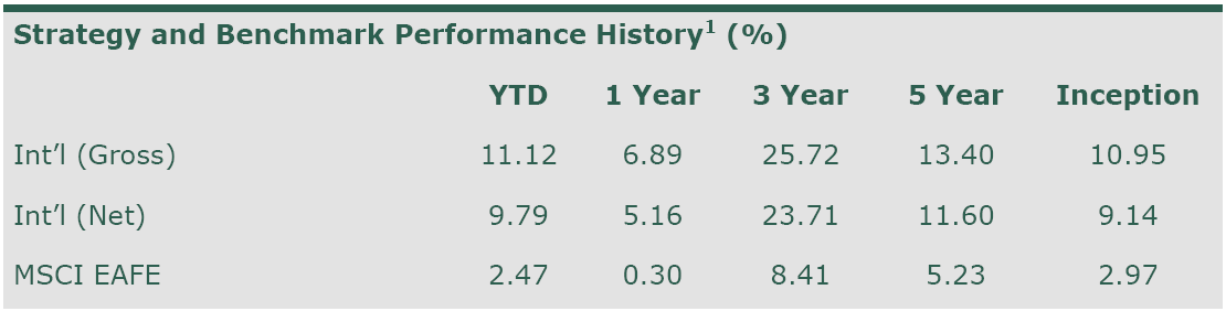 International: This All-Cap International equity strategy seeks to achieve long-term capital appreciation through a portfolio of international companies in both developed and emerging markets. This portfolio invests in those securities with powerful relative strength characteristics and requires that the securities maintain strong relative strength in order to remain in the portfolio. Exposure to international markets is achieved through American Depository Receipts (ADRs).