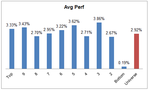 Total account performance shown is total return net of management fees for all Dorsey, Wright & Associates managed accounts, managed for each complete quarter for each objective, regardless of levels of fixed income and cash in each account. Information is from sources believed to be reliable, but no guarantee is made to its accuracy. This should not be considered a solicitation to buy or sell any security. Past performance should not be considered indicative of future results.