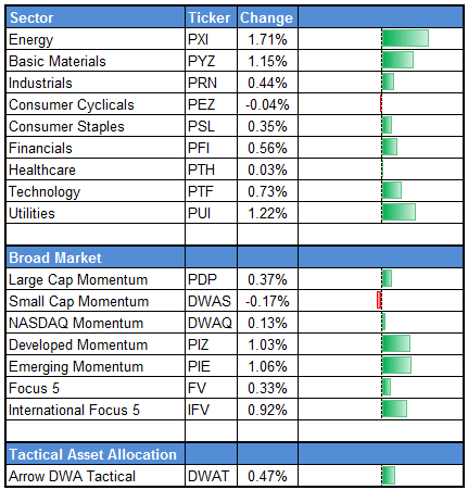 Past performance is not indicative of future results. Potential for profits is accompanied by possibility of loss. This example is presented for illustrative purposes only and does not represent a past recommendation. The relative strength strategy is NOT a guarantee. There may be times where all investments and strategies are unfavorable and depreciate in value. Nothing contained herein should be construed as an offer to sell or the solicitation of an offer to buy any security. This post does not attempt to examine all the facts and circumstances which may be relevant to any product or security mentioned herein. We are not soliciting any action based on this document. It is for the general information of clients of Dorsey, Wright & Associates, LLC (“Dorsey, Wright & Associates”). This document does not constitute a personal recommendation or take into account the particular investment objectives, financial situations, or needs of individual clients. Before acting on any analysis, advice or recommendation in this document, clients should consider whether the security or strategy in question is suitable for their particular circumstances and, if necessary, seek professional advice.