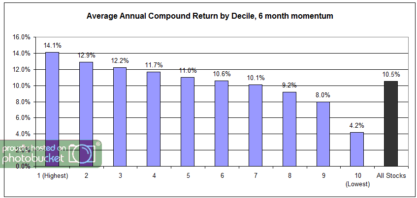 I prefer Scenario 4, but maybe that’s just me. Since it is well-known even to Eugene Fama and Ken French that momentum has outperformed over time, what is their study really saying? It’s saying that essentially no one in the mutual fund industry is employing this approach. That’s more a problem with the mutual fund industry than it is with anything else. (Mutual fund firms are businesses and they have their reasons for running the business the way they do.) One option, I guess, is to throw up your hands and buy an index fund, but maybe it would make more sense to seek out the rare firms that are employing a disciplined relative strength approach and shoot for Scenario 4.