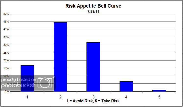 Chart 4: Risk Appetite Bell Curve. This chart uses a bell curve to break out the percentage of respondents at each risk appetite level. Over 80% of all respondents were looking for a risk appetite of either 2 or 3 (just like last time).
